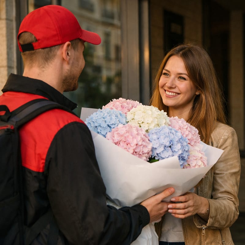 Букеты с 3 гортензиями — от 2769 руб. Миксы с розами и эустомой — 3000–4500 руб. Премиальные свадебные на 5–7 гортензиях с пионами и ранункулюсом — 4500–8000 руб. Минимум для в подарок доставки — 500 руб. Цены ниже летом (июль–сентябрь, сезон гортензии).