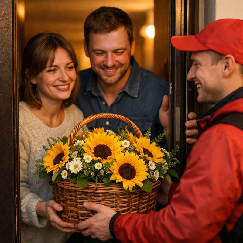 «МонаФлора» — цветочный интернет-магазин в Дудинке и Красноярском крае, работаем круглосуточно. Подсолнух в корзинке стоит 7-10 дней при правильном уходе. Сезон в РФ — июль-октябрь, в остальное время импорт из Голландии (цена выше на 30%). Уход: доливать воду в губку каждый день (подсолнух — водохлёб), удалять увядшие нижние листья. На 1 сентября — повышенный спрос, заказывайте за 2-3 дня. От 500 руб. Доставка бесплатная, курьеры привезут свежие цветы быстрее 90% конкурентов. Дополните сладким.